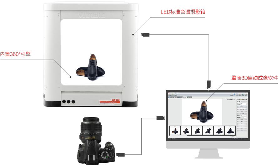 內(nèi)置5500K標(biāo)準(zhǔn)色溫LED攝影燈,還原產(chǎn)品真實(shí)色彩,360 度無暗角布光讓您輕松拍攝!